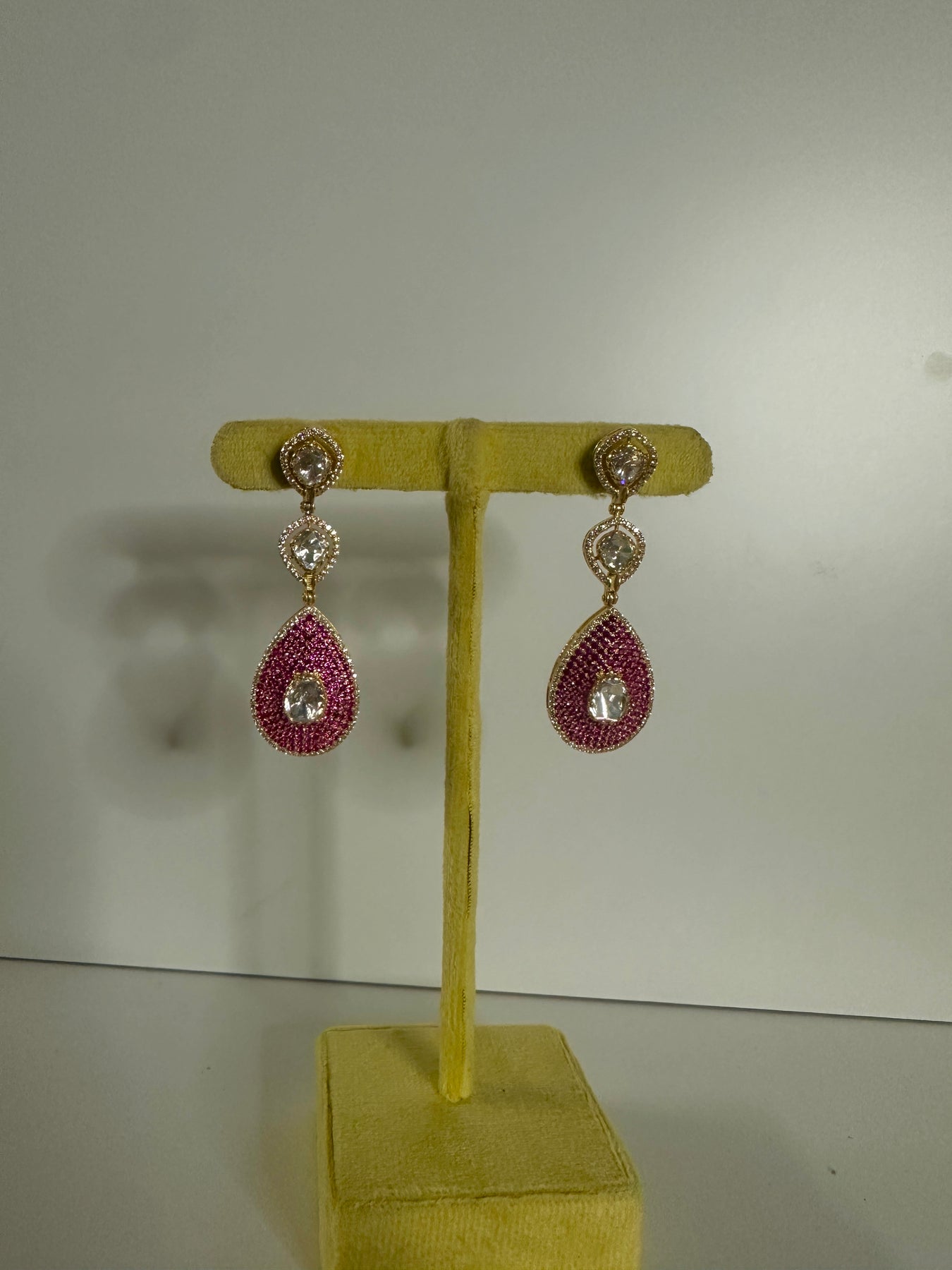 Exquisite silver drop earrings crafted with shimmering cubic zirconia and delicate stone detailing. A perfect blend of elegance and sophistication, ideal for special occasions or timeless everyday glamour.