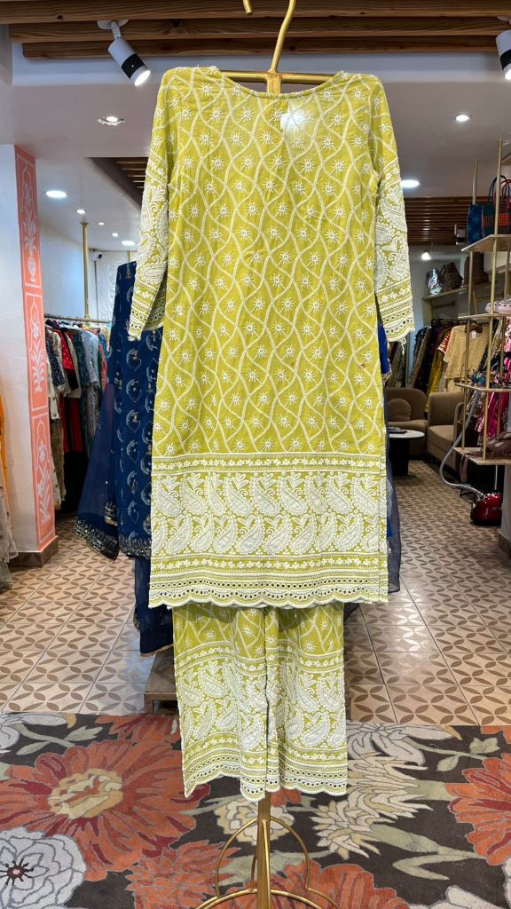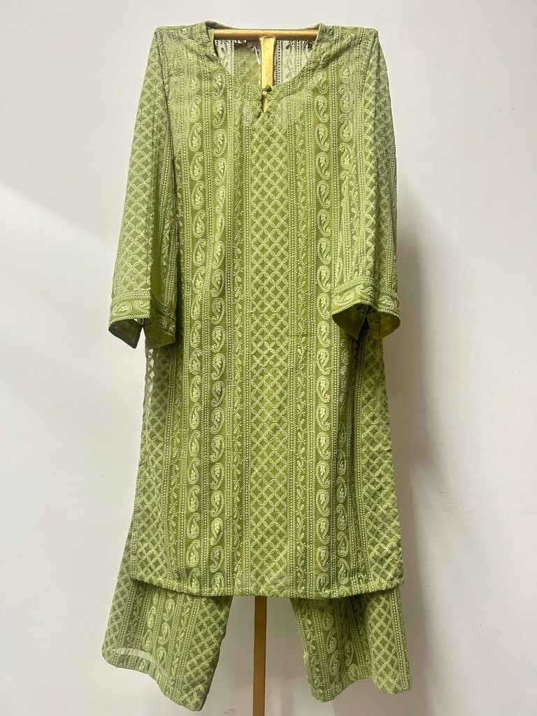 Classic Chikan Green Co-Ord Set