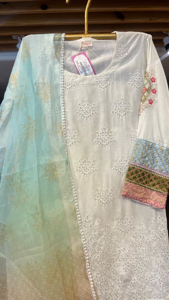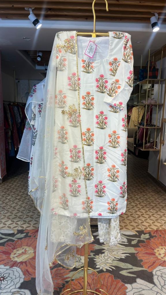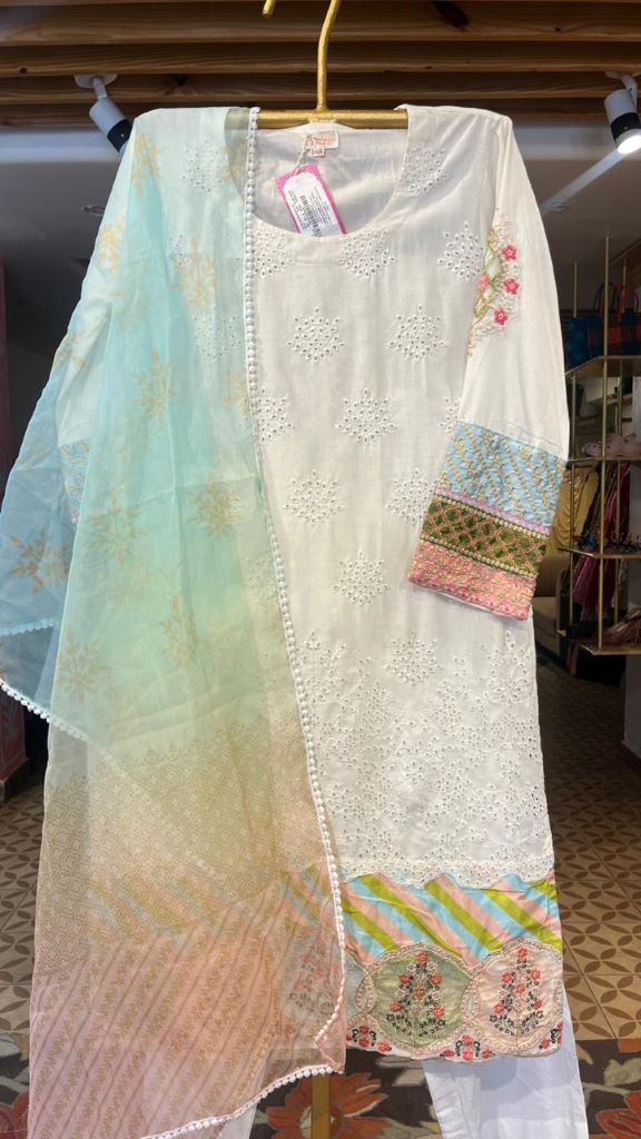 MEHNAAZ WHITE STRAIGHT SET