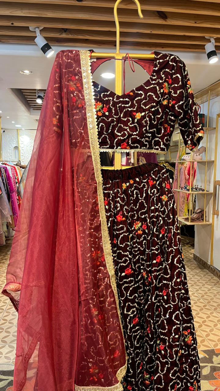 RUHAAN MAROON VELVET LEHENGA SET