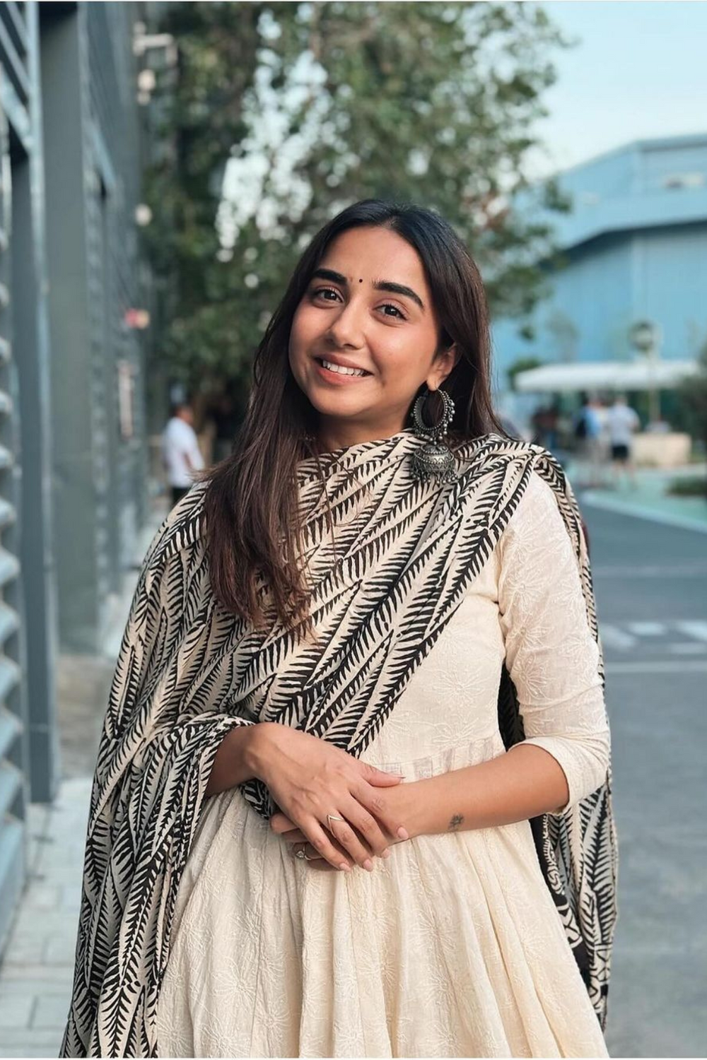 Beautiful Chikan Anarkali With Pajama and Bagru print Dupatta.