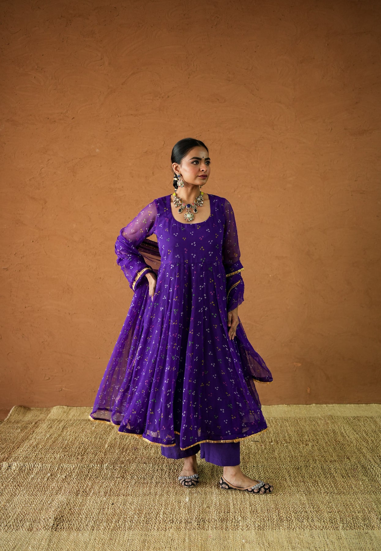 • Fabric: Lightweight Georgette (Anarkali & Dupatta), Cotton-silk blend (Pants)