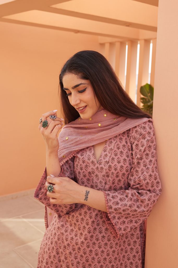 This Exclusive Aliaa Straight  set is made up of fine cotton in a pastel vibe .