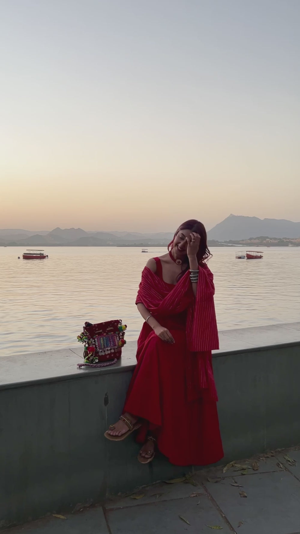 Gota Patti Afri Anarkali Set With Block Printed Pants And Organza Dupatta